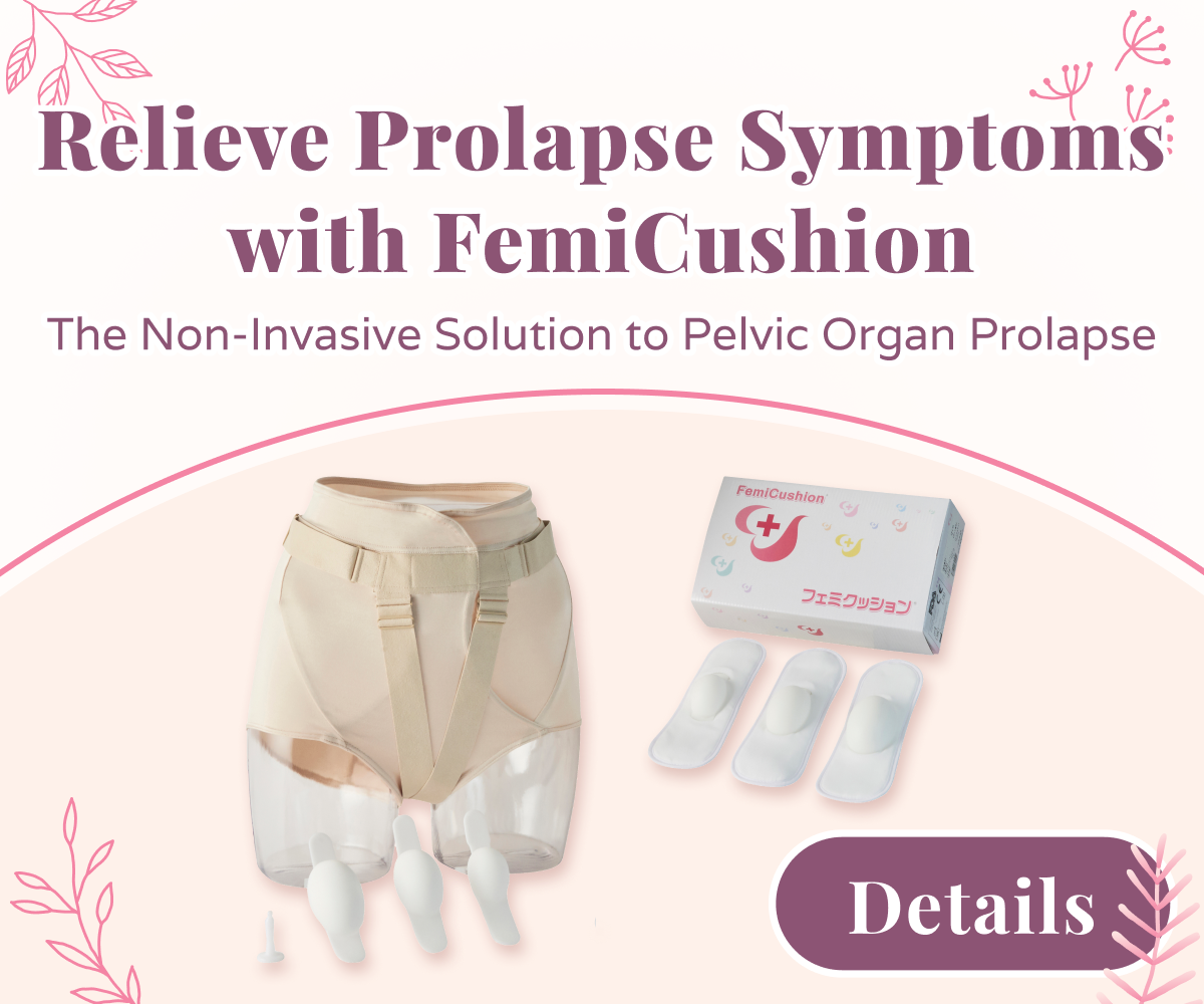 إذا كنت مهتمًا بتجربة ملابس التدلي بدلاً من استخدام الفرزجة أو إجراء جراحة تدلي ، فإن FemiCushion هو جهاز مبتكر من اليابان يمكن ارتداؤه مثل الملابس الداخلية. إنها ليست فقط غير جراحية وغير جراحية ، ولكن المواد المختارة بعناية من FemiCushion وأحجامها القابلة للتخصيص والتصميم الحاصل على براءة اختراع تجعلها خيارًا مريحًا لأي امرأة تعاني من تدلي ما بعد استئصال الرحم ، بما في ذلك كبار السن وكبار السن.